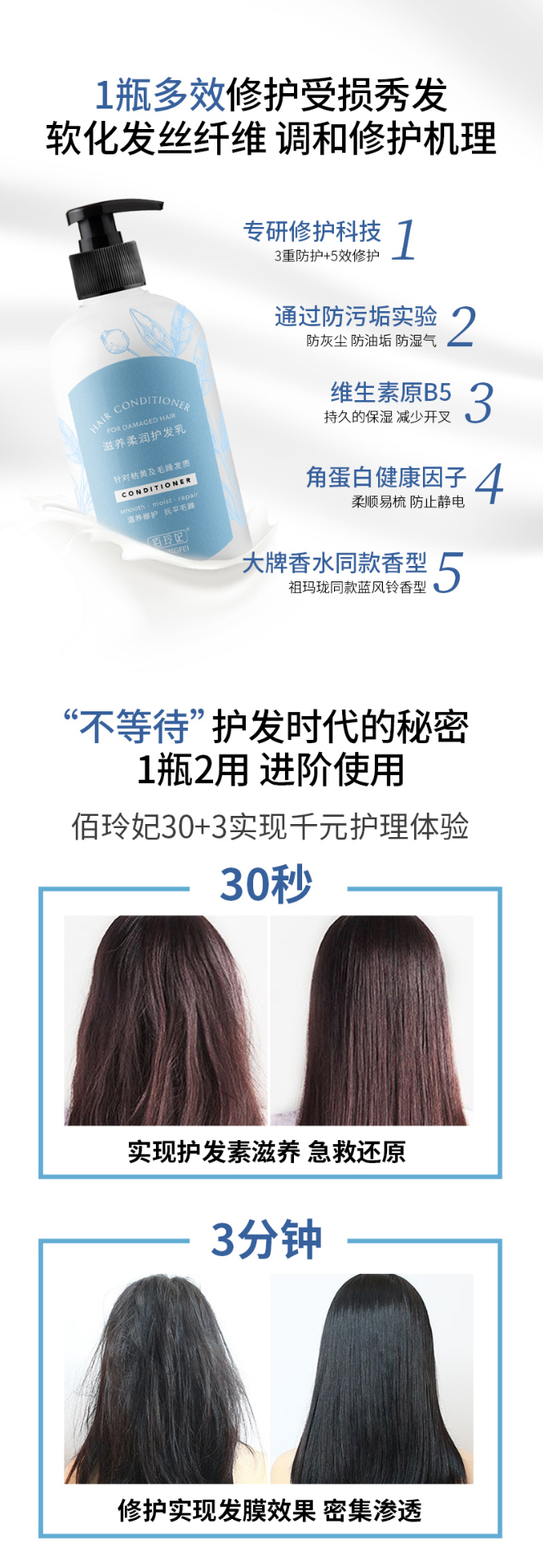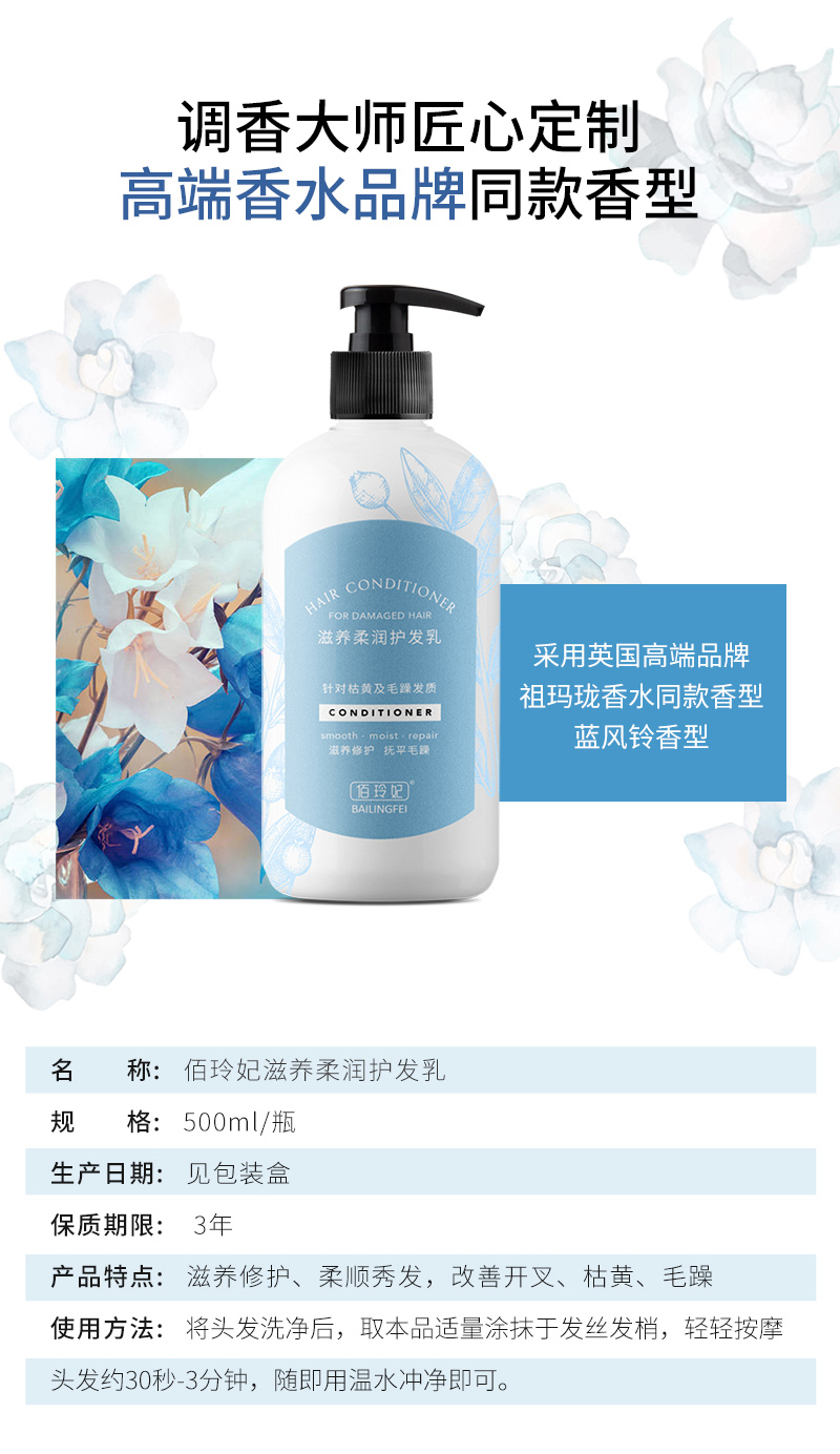 【会员日】佰玲妃洗护 护发素+发膜 蓝风铃香型护发乳