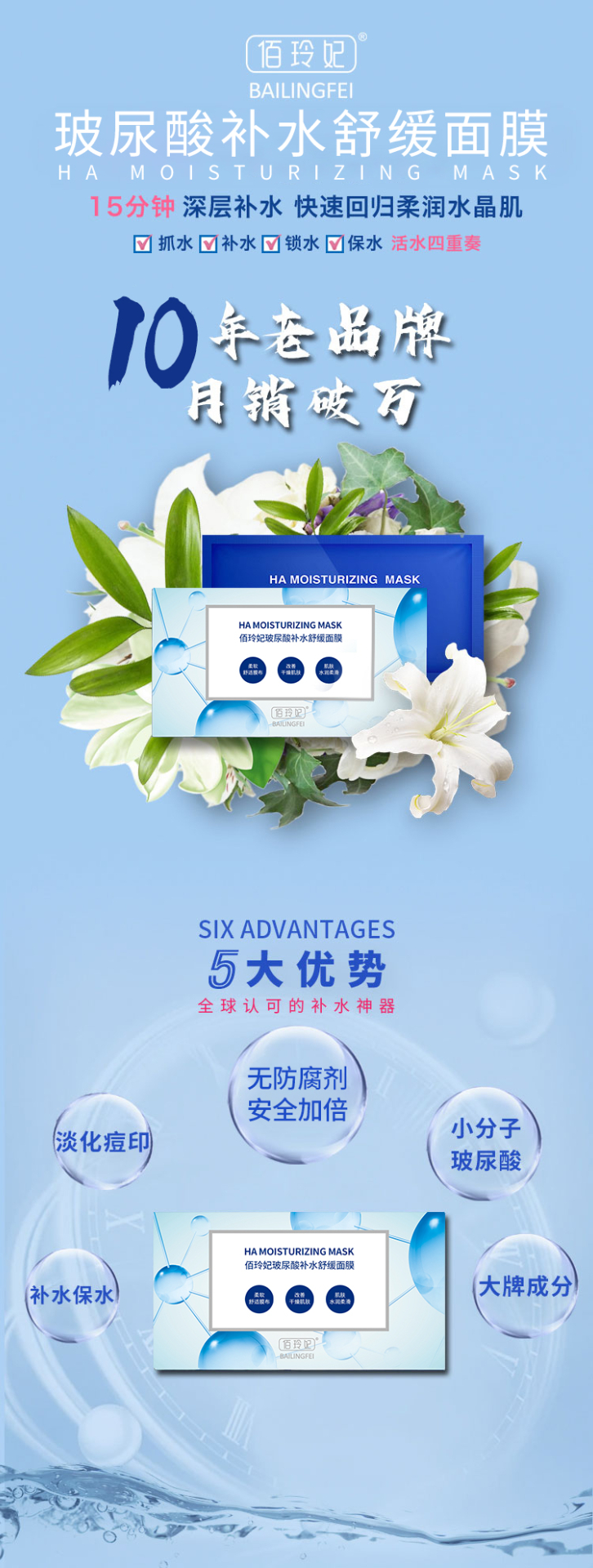 15分钟奢享高档SPA 玻尿酸补水舒缓面膜 蓝膜