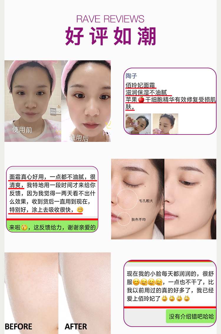 苹果细胞配方,促进细胞再生;无防腐剂,更温和,婴儿级;添加抗敏因子,适合所有肤质!